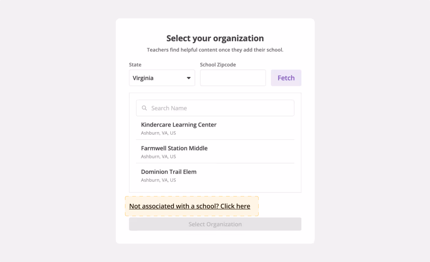 Around 5% of educators are independent practitioners. Some might also use Quizizz outside their school, and need not associate their account with their school. For such cases, it was independent to have a CTA to declare that a user is not associated with a school.