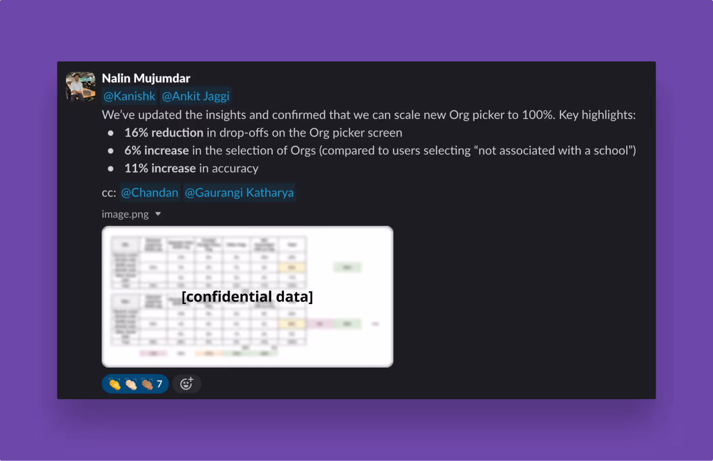 Org accuracy helps us understand which schools and districts have active Quizizz users, which directly affects the sales funnel. Improving the accuracy of users' data will help the sales team prepare a better pitch for the clients.